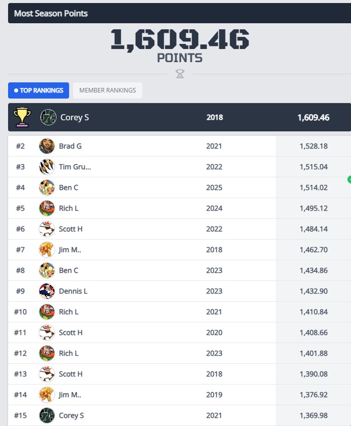 This was a rollercoaster of a season. The Pimps and Irish Pride showed their strength in the regular season as teams like the Scallywags and JBY got hosed. TacoMan had a season to forget, while the Midway Monsters and Jesters found a way to get back to postseason contention. As we near this 2025 Championship Game, let’s look at the payout list. We can settle up with everything that is locked, and finish with with those final two categories when it’s all said and done.